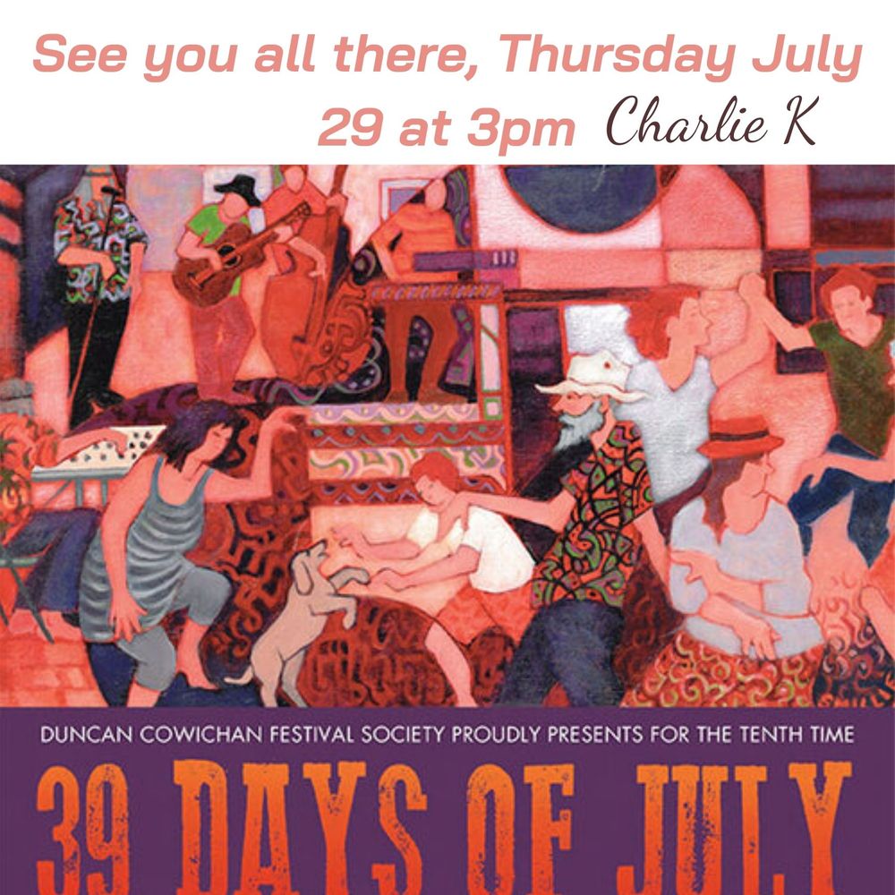 Such a pleasure to perform at this festival for the last two years. Hats off to the Duncan Cowichan Festival Society for years of great organizational skill. I remember asserting to the crowd, "I arrive and perform for an hour and then it's off into the wind. While the organizers are there everyday, Sunup till Sundown for the whole affair. Kudos to everyone who makes the 39 Days of July, a rather fun place to be.